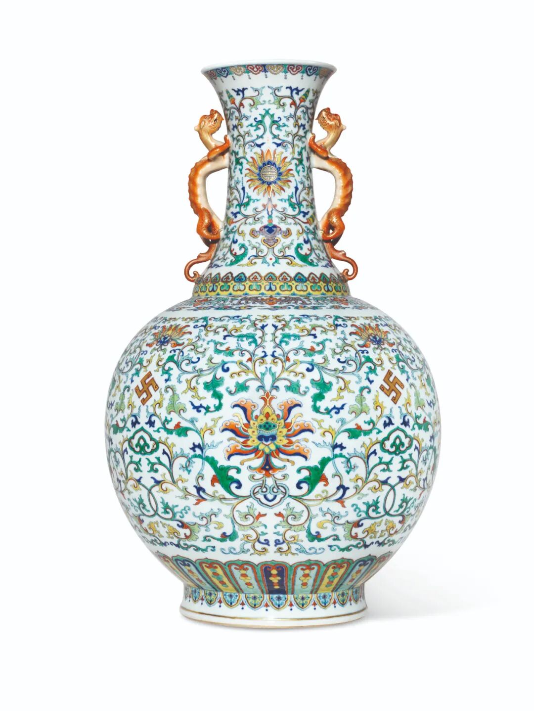 其中,28件望星楼藏瓷涵盖了清朝史上最强盛的三个朝代康熙、雍正及乾隆时期之各色御瓷。整个珍藏犹如万花筒般灿烂多姿,体现了十八世纪中国瓷器巧夺天工之技艺,盛清时期的御制官窑瓷器既师古效贤,多方借鉴宋、元、明代陶瓷为其灵感泉源,亦同时注入了诸多新意,历经百年仍历久弥新,为中华艺术永垂不朽的珍宝。“重要中国瓷器及工艺精品拍卖”则将呈献众多来自私人及机构珍藏的精彩中国瓷器及艺术品,涵盖唐宋陶瓷、明清瓷器、掐丝珐琅、佛教艺术、文房珍玩、玉器以至黄花梨家具等。本场拍卖将由来自纽约由提卡孟森-威廉斯-普罗克特艺术学院珍藏的清乾隆斗彩万福庆寿双螭龙耳大瓶领衔,其拍卖收益将用于孟森威廉斯购藏基金。