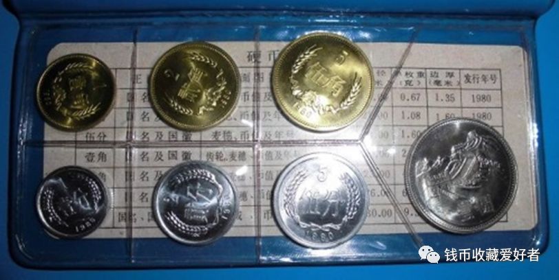 1980年沈阳造币厂生产装帧了80000套普制币的蓝皮本、黑皮本套装币。
