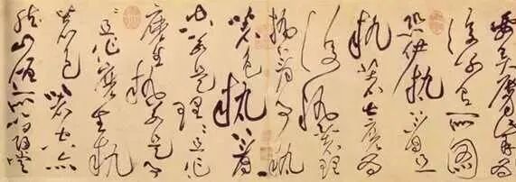 《诸上座》卷 (北宋),故宫博物院藏。此卷为纸本,大草书,纵33厘米,横 729.5厘米。《诸上座》原为五代金陵僧人文益语录的节录,通篇是“禅宗”的语言。此卷是黄庭坚为他的朋友李任道写的,款署“山谷老人书”,钤“山谷道人印”,运笔圆劲苍老,笔势雄畅。卷后有明代吴宽、 清代梁清标跋。