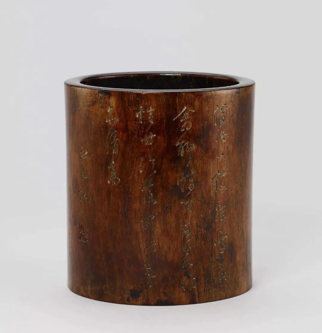 清乾隆 「杜书绅」款喜上眉梢诗文黄花梨笔筒