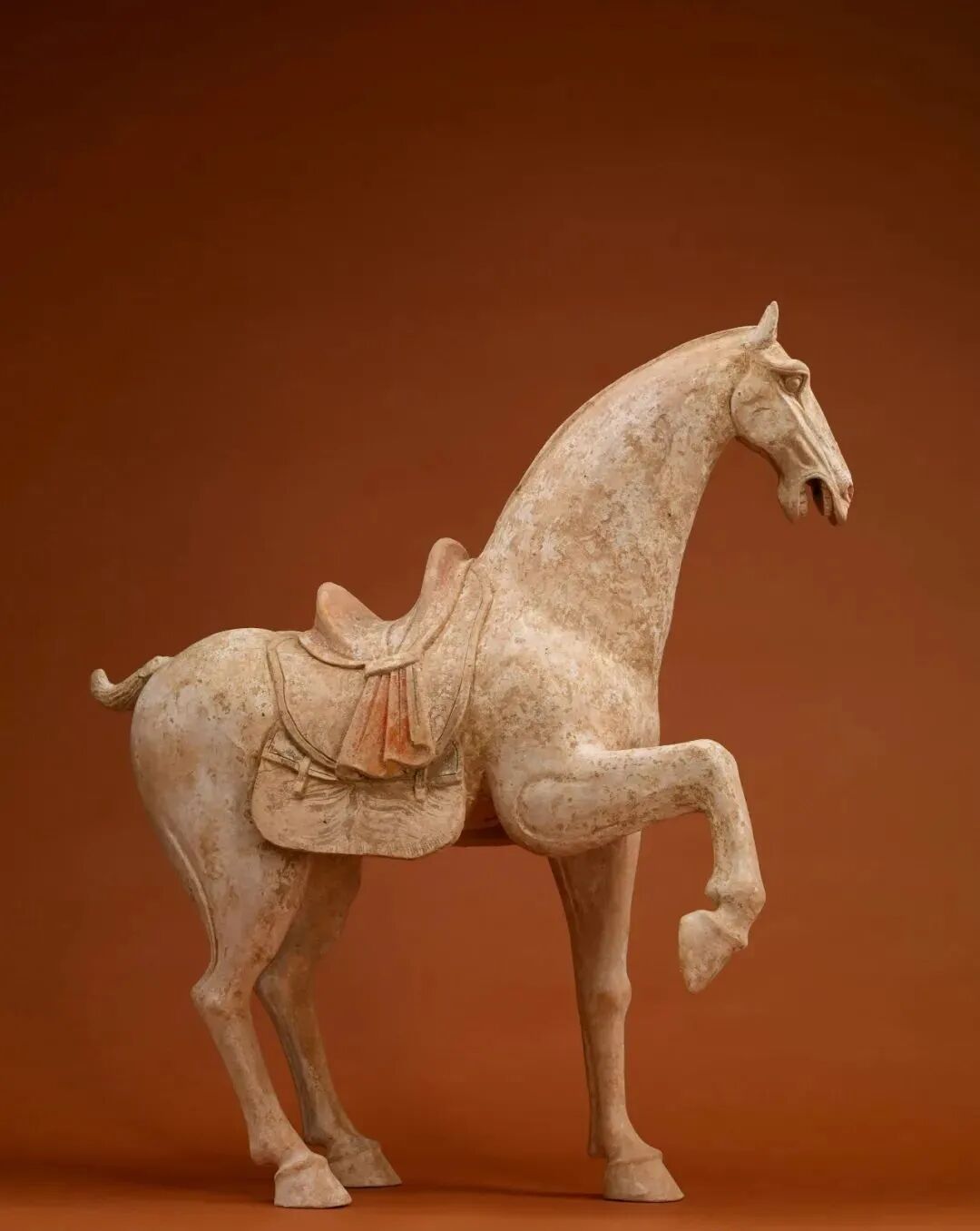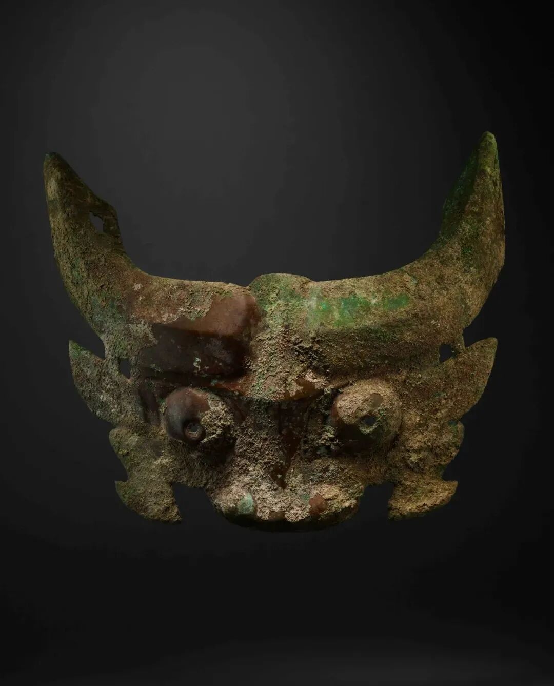立体式浮雕马冠,造型似饕餮,牛角弯曲高耸,双目圆睁突出,此类马冠存世数量极少,在近十年的拍卖市场,仅纽约苏富比在 2013 呈现的Julius Eberhardt 专拍中有一件风格相仿的马冠,最后以逾估价三倍的价格成交,年代亦与本器相近,可资参照。