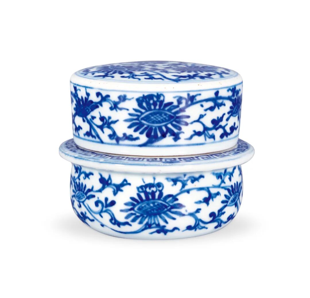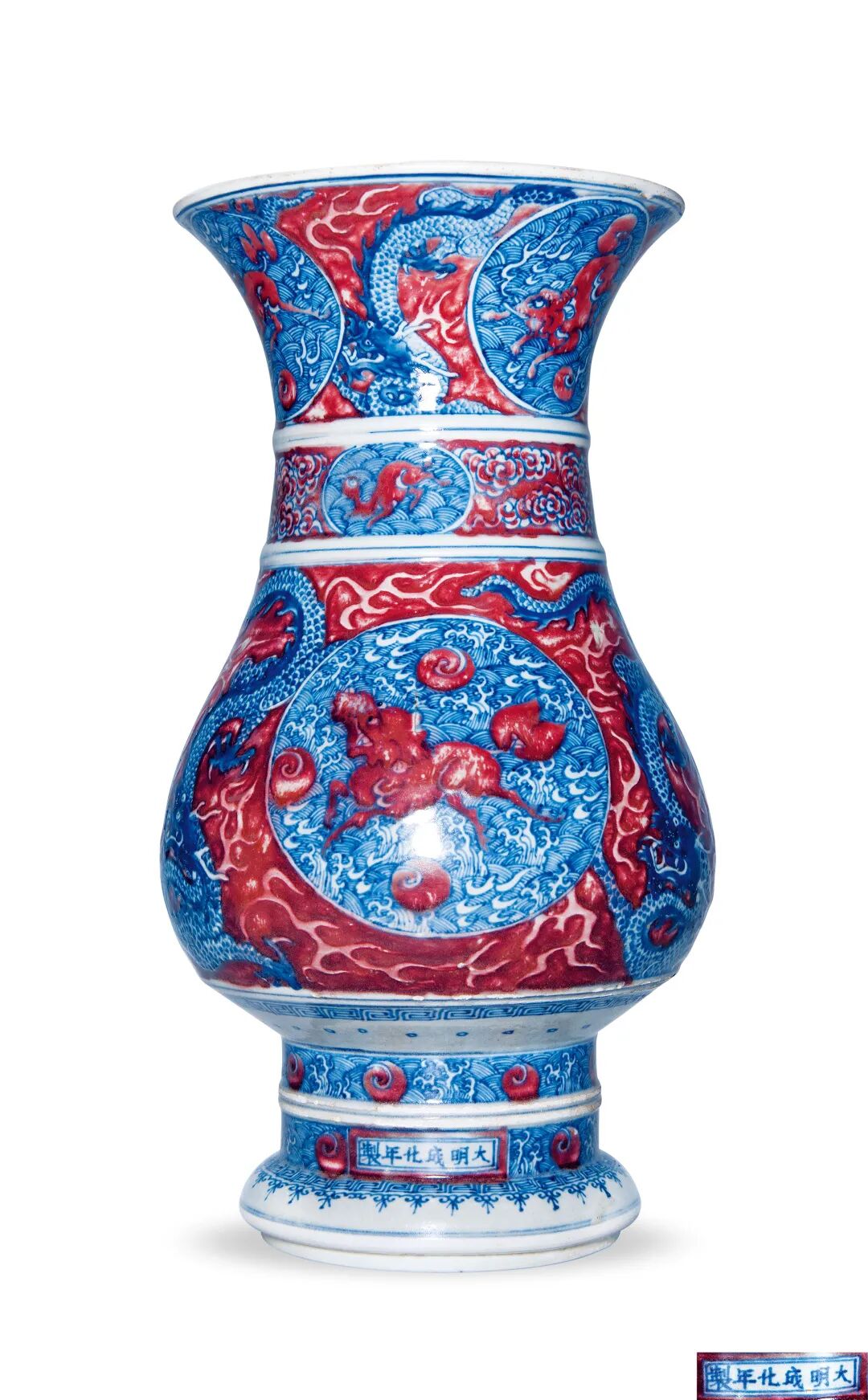 拍品估价:200,000 - 300,000 人民币1.《锦绣罗衣巧天工》,香港市政局,1995年,页82、83,图7;2.《故宫博物院藏文物珍品大系——青花釉里红》(中),上海科学技术出版社、商务印书馆(香港)有限公司,2000年,页32、33,图30;3.《成化瓷器特展图录》,台北故宫博物院,2003年,页65,图39。