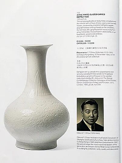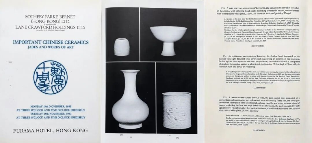 拍品估价:80,000 - 100,000 人民币来源:Marcus Ezekiel 旧藏(附原藏家早年笔记资料照片) 1.《故宫博物院藏文物珍品大系——珐琅彩·粉彩》,上海科学技术出版社、商务印书馆, 1999年,页169,图150;2.《故宫博物院藏古陶瓷资料选粹·卷二》,紫禁城出版社,2005年,页184,图160、页 249,图219;3.《故宫博物院藏文物珍品大系——青铜礼乐器》,上海科学技术出版社、商务印书馆(香港)有限公司,1999年,页111,图72;4.《清代单色釉瓷器特展目录》,国立故宫博物院,1981年,页107、图54;5.《海外遗珍·陶瓷(四)》,国立故宫博物馆,1993年,页188,图182。拍品估价:100,000 - 120,000 人民币1.《清康雍乾名瓷》,台北故宫博物院,1986年,图86;2.《故宫博物院藏古陶瓷资料选萃》卷二,紫禁城出版社,2005年,页257,图227。1.《成化瓷器特展图录》,台北故宫博物院,2003年,页38,图12;拍品估价:100,000 - 120,000 人民币