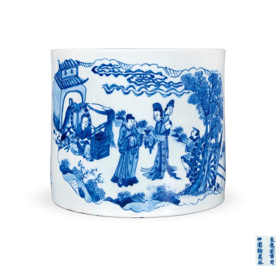 Lot417 清康熙 青花“长亭送别”人物故事图笔筒拍品估价:200,000 - 300,000 人民币记录:北京荣宝 2019年6月13号,编号 2214