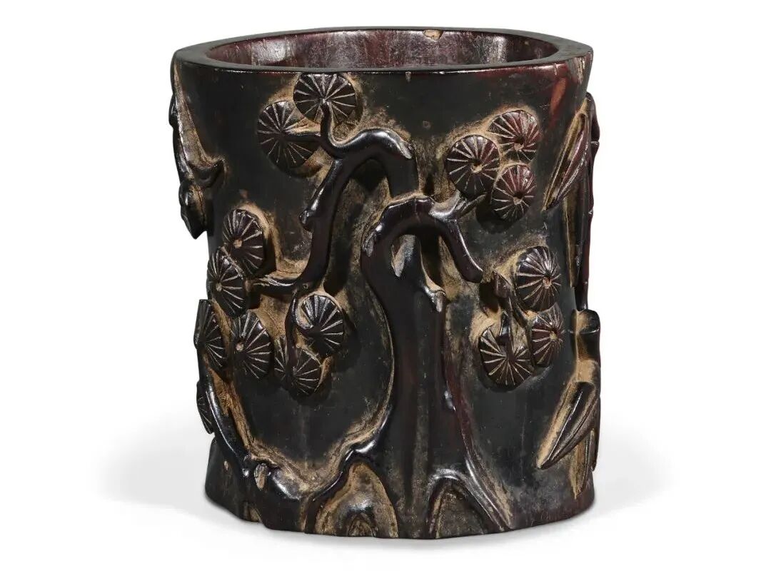 紫檀三友图笔筒
