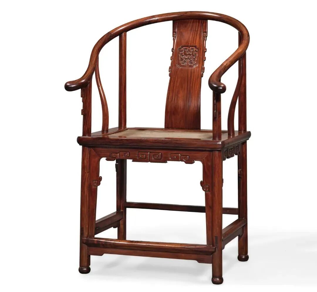 黄花梨拐子龙纹珠足圈椅