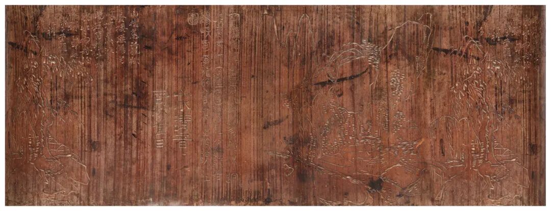 “冈峦相经亘,云水今参错。林迥硖角来,天窄壁面削。杜少陵青阳峡句,李龙眠曾拈之作陕江图”“山水清音,春秋佳日”篆书题刻;