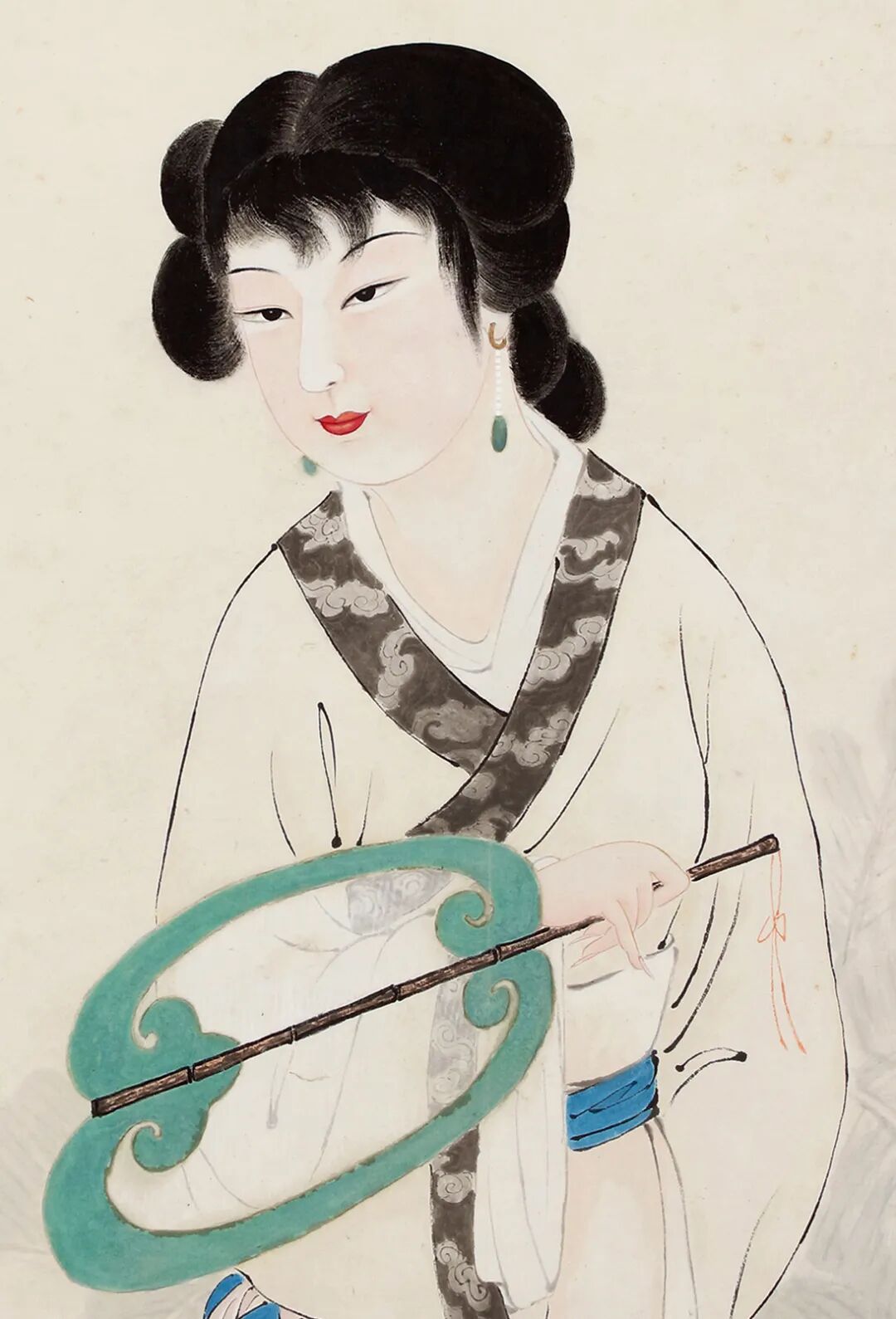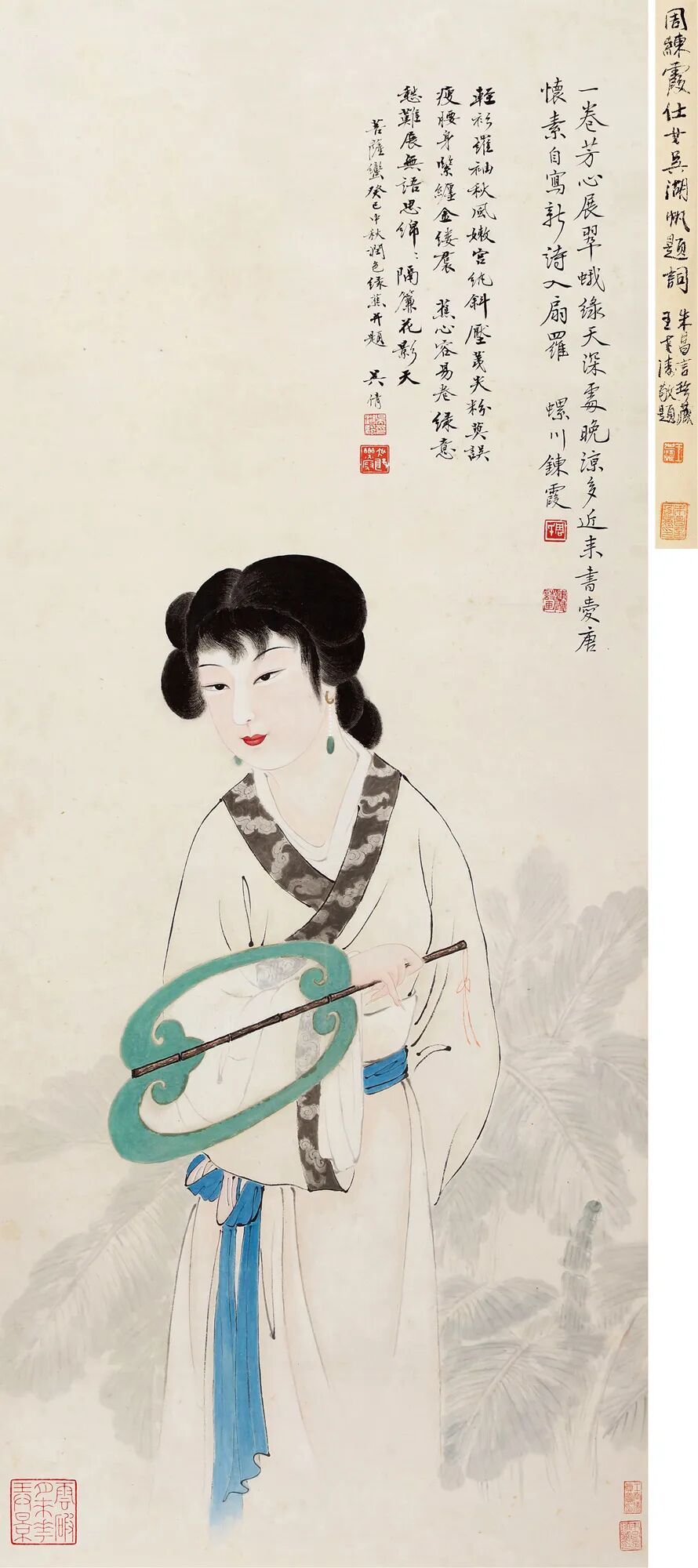 吴湖帆、周錬霞《执扇仕女》局部