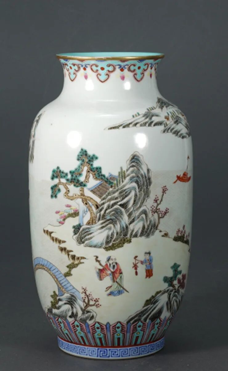 清道光·粉彩山水人物通景灯笼尊#本器外壁粉彩装饰,画法细腻,栩栩如生,为道光时期粉彩瓷器佳品。lot4004