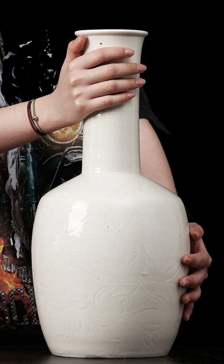 元·定窑剔褐彩花卉纹玉壶春瓶#本品为玉壶春式,器型优美,装饰考究,为定窑的上乘佳作。lot2062