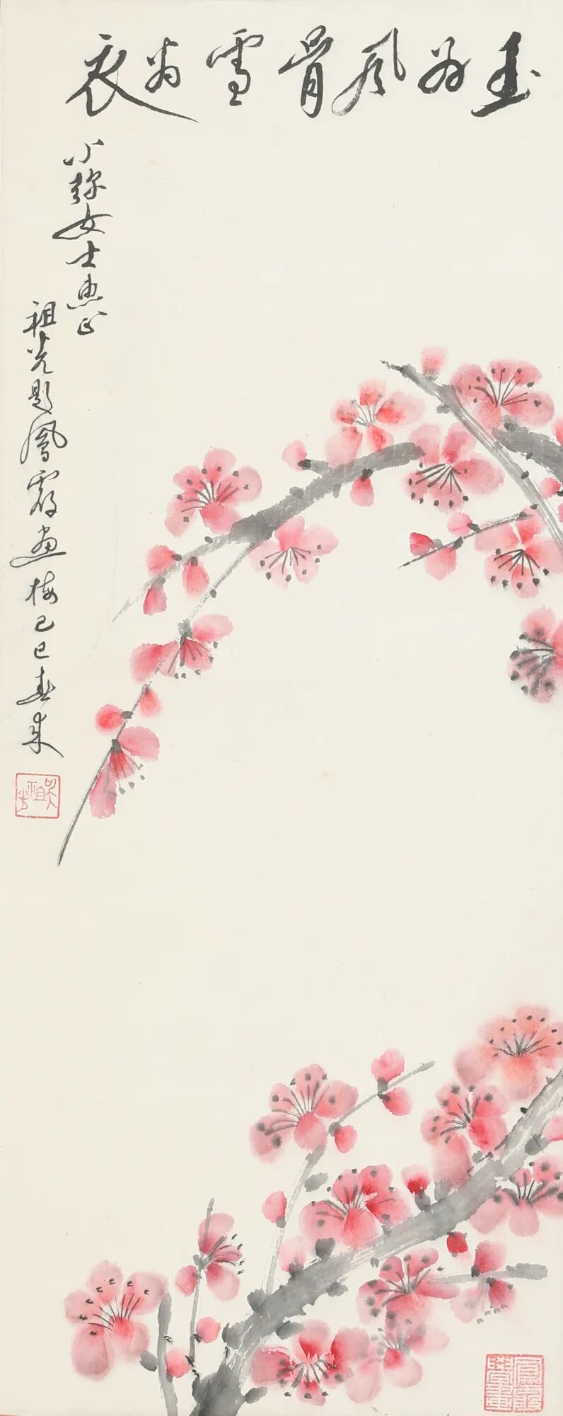 玉为风骨雪为衣。小弥女士惠正。祖光题凤霞画梅,己巳春来。