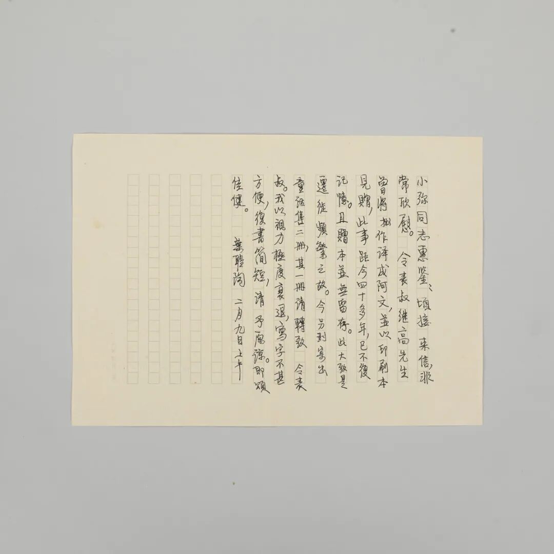 另有叶圣陶孙媳姚兀真致马小弥信札一通一页,提及叶圣陶入院手术事及北京医院院长马蔚然。