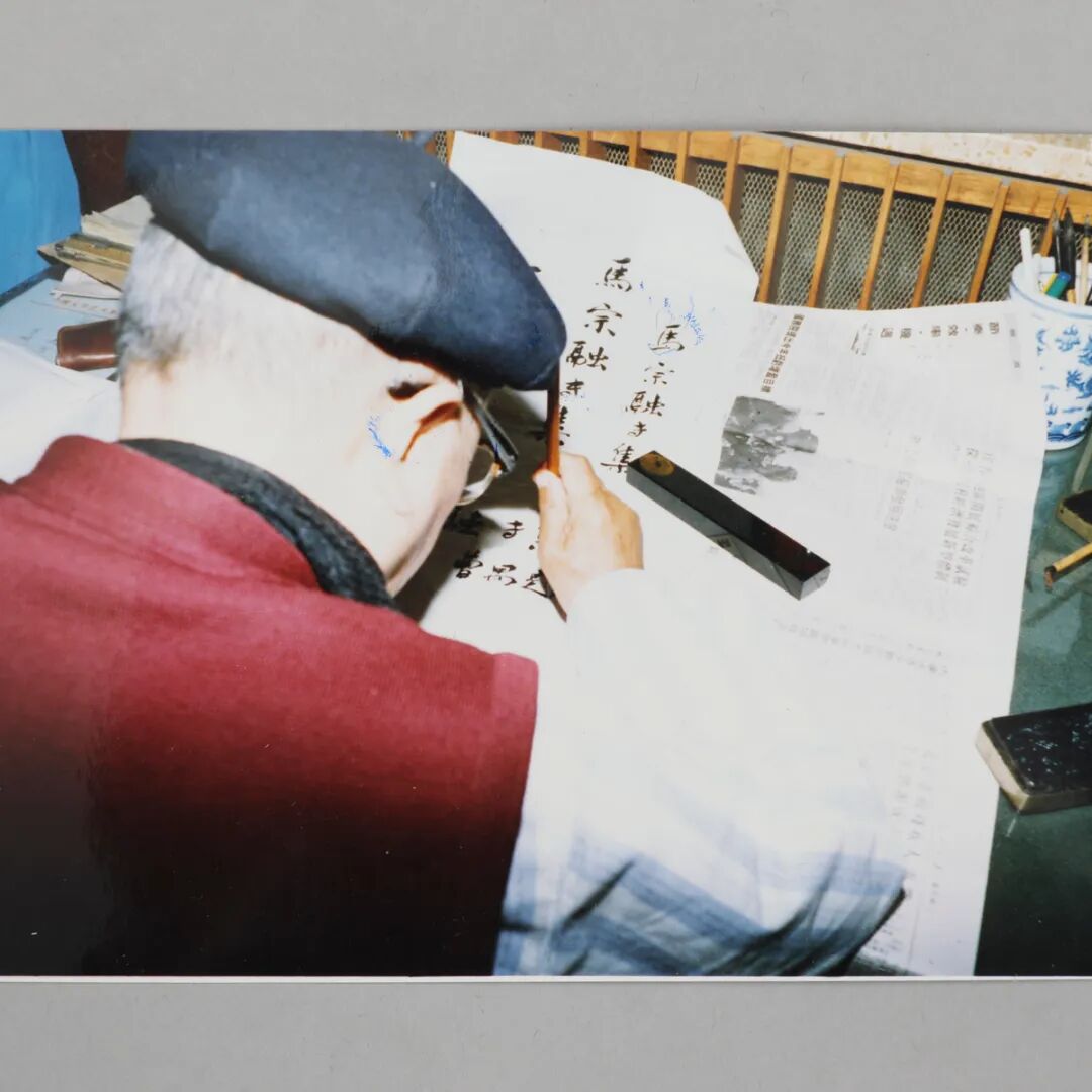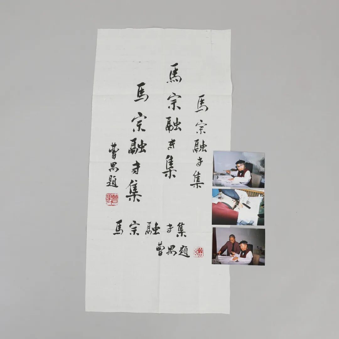 此为曹禺为出版马宗融专集而作题签一帧,附题签时拍摄的彩色照片三帧,时间约在1990年前后。