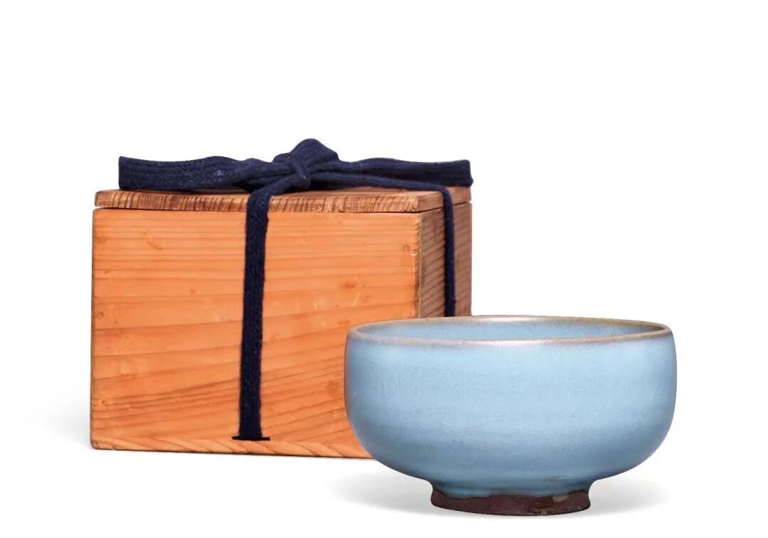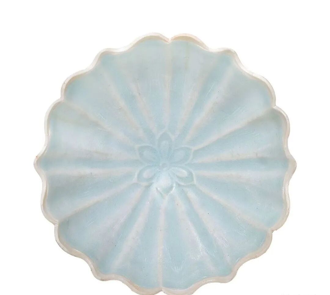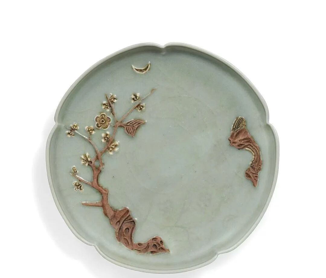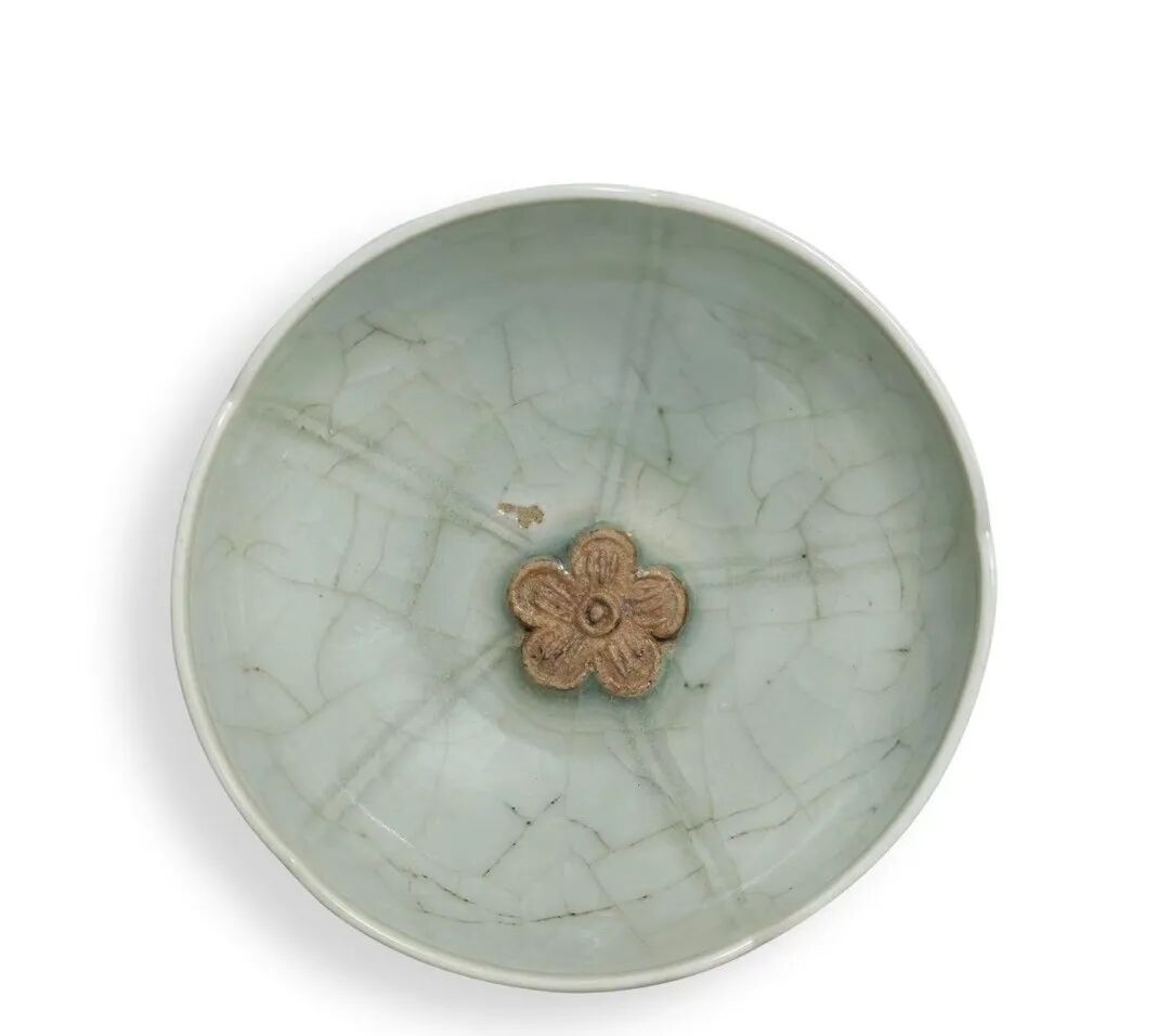 南宋晚期/元 龙泉窑粉青釉露胎冰梅树影盏托 (一套)