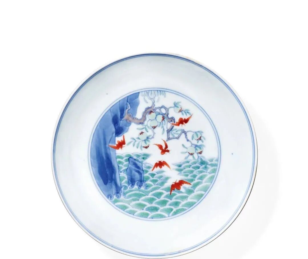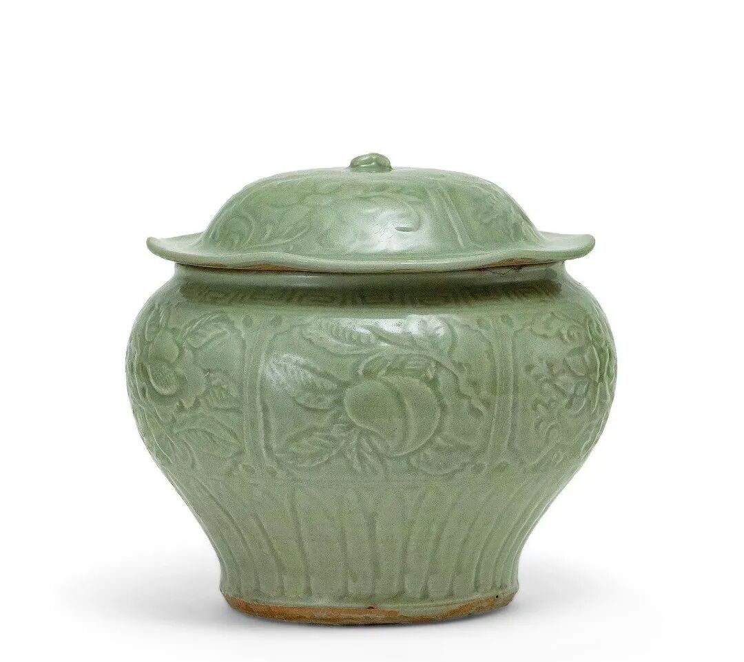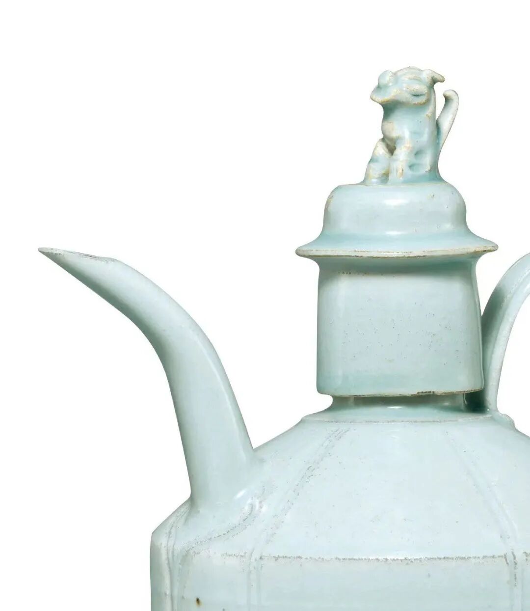南宋晚期/元 龙泉窑粉青釉露胎冰梅树影盏托 (一套)