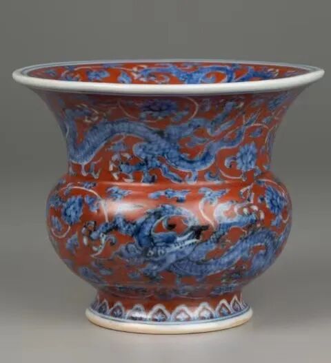 明正德 红地青花龙纹渣斗(整体) 美国哈佛艺术博物馆藏
