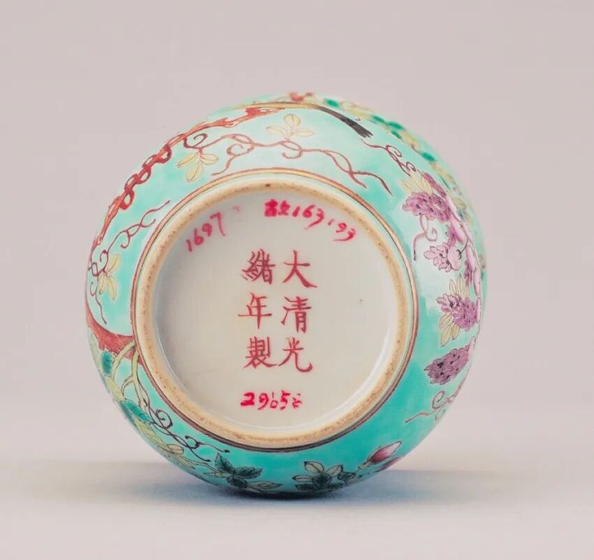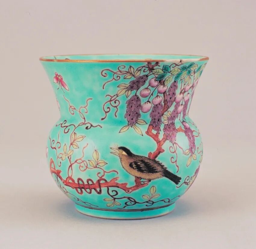 清光绪 绿地粉彩藤萝月季花纹奓斗(底款) 北京故宫博物院馆藏