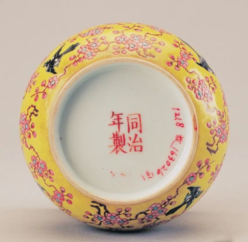 清同治 黄地粉彩梅鹊纹奓斗(底款) 北京故宫博物院馆藏