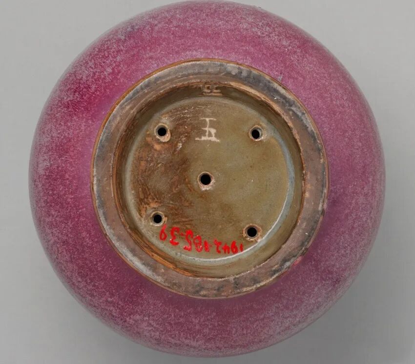 明 钧窑胭脂红釉渣斗式花盆(底部) 美国哈佛艺术博物馆藏