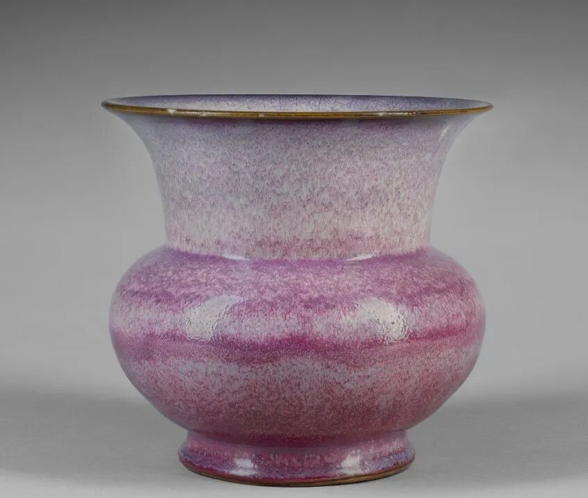 明 钧窑胭脂红釉渣斗式花盆(正面) 美国哈佛艺术博物馆藏