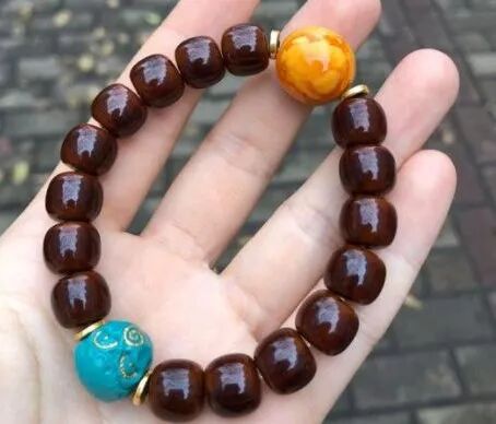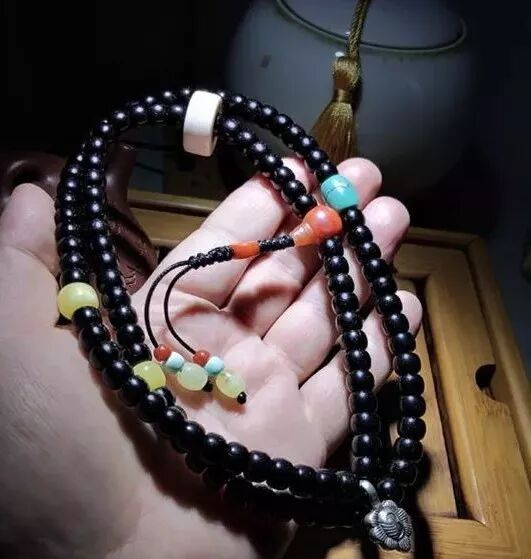 尺寸稍大的可以做椰蒂单圈,搭配一两颗配珠就好,黑亮的手串很有气质。