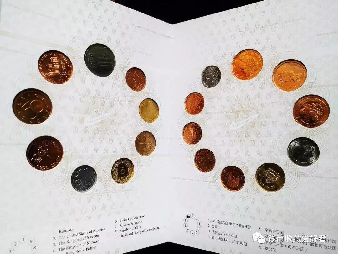 册内共收集了20个不同国家发行的20枚精美硬币。