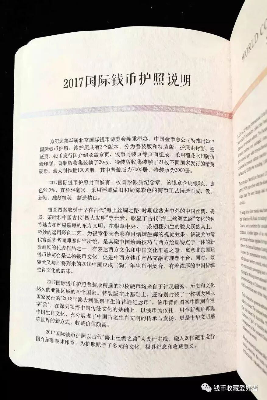 2017国际钱币护照。该护照共有2个版本,分为普装版和特装版。普装版精选的20枚硬币均来自于钟灵毓秀、历史和文化悠久的亚洲区域的20个国家。