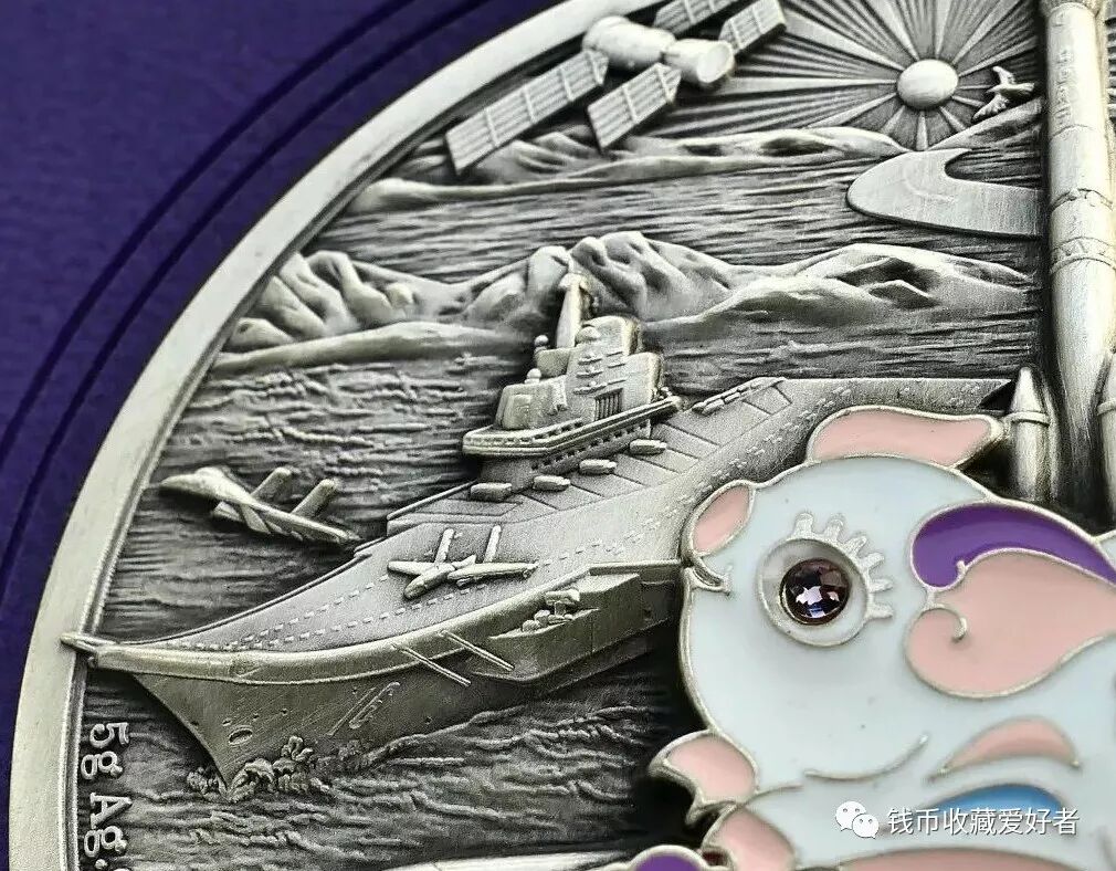 该银章图案设计以我国改革开放的伟大成就与美洲的古老文明为主元素,横跨古今中外,寓意丰富。画面中,天宫二号、辽宁号航母、长征三号火箭、复兴号高铁等元素,向人们展示了改革开放40年间所取得的丰硕成果。