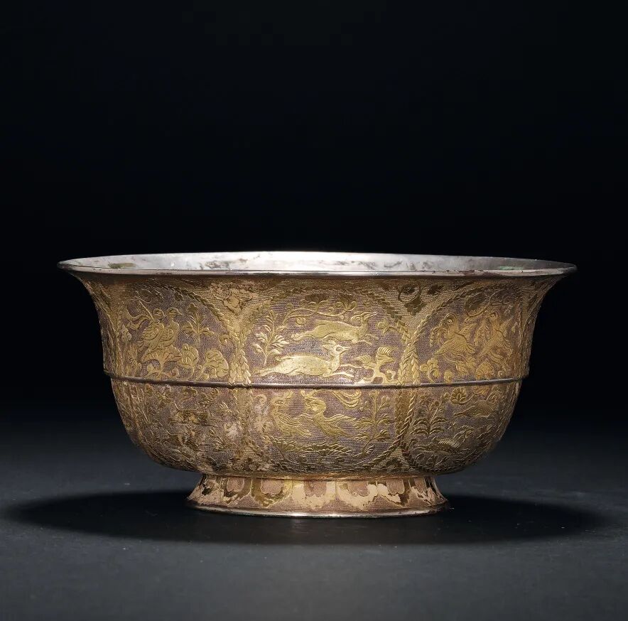 唐 銀鎏金鏨胎瑞獸紋碗
