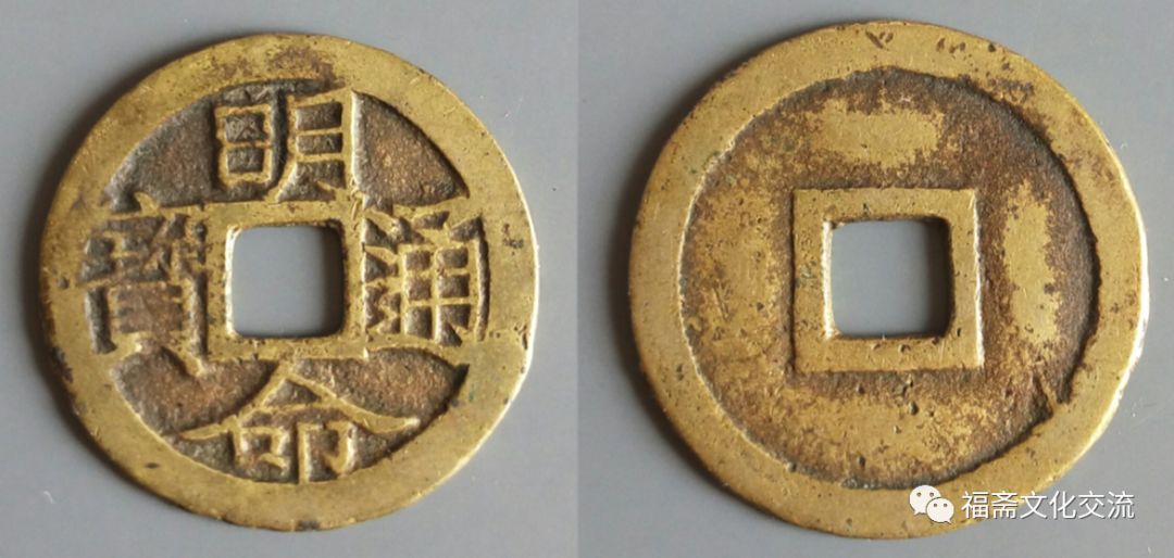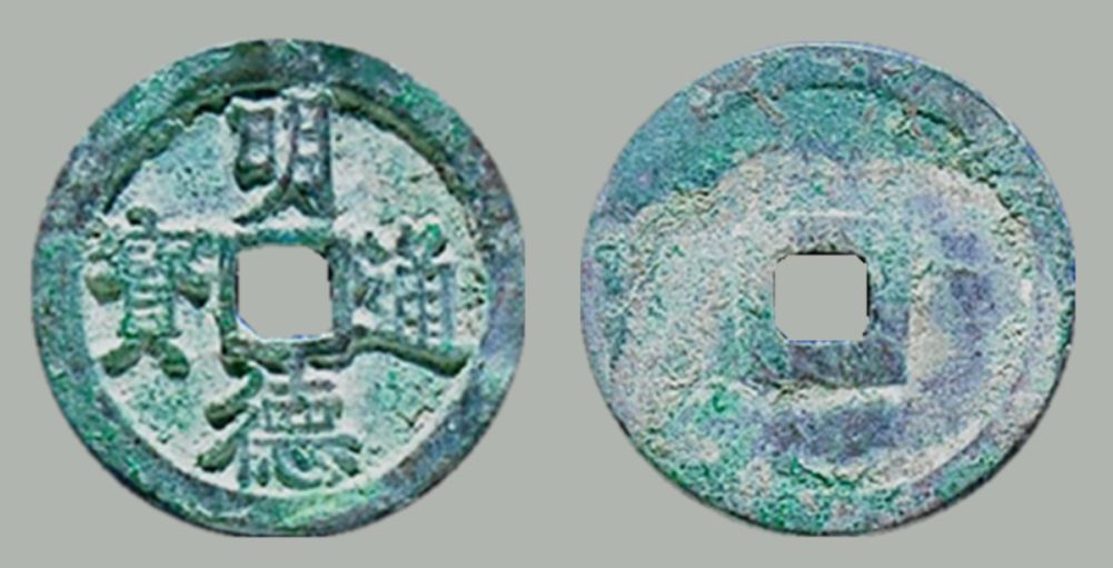 明道元宝安南李朝太宗李佛玛明道二年(1043年,宋庆历三年)铸。“明道元宝”四字楷书,旋读,光背无文。与宋明道钱区别在于:宋明道体大厚重(径2.5~2.6厘米,重3.8~4.2克),安南明道体小肉薄(径2.2~2.3厘米,重2.4~3克),宋明道文字雄健舒展,“元”字下两笔“聚头”;安南明道钱文拘谨狭窄,“元”下两笔“分头”而显疲软。二钱风格相去甚远,稍加留意即不难分辨。然安南明道钱传世远较宋明道稀少,故而“身价百倍。