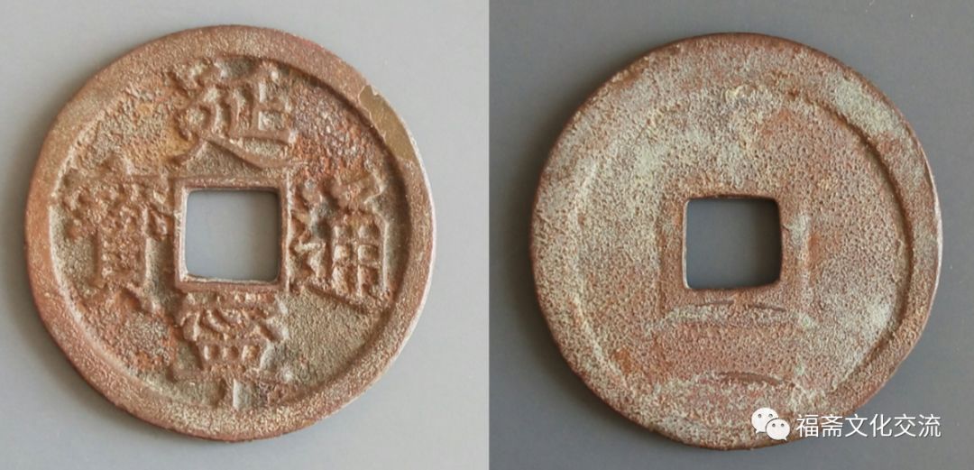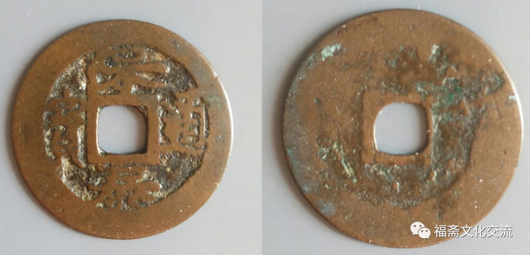建福通宝阮朝简宗阮福昊建福年间试铸于河内府,其元年(1883年)即清光绪九年。此钱有铜、锌二种,传世绝少。面文“建福通宝”楷书,直读,光背或背有“六文”二字。径2.2~2.3厘米,制作粗疏。迄今极难一见。
