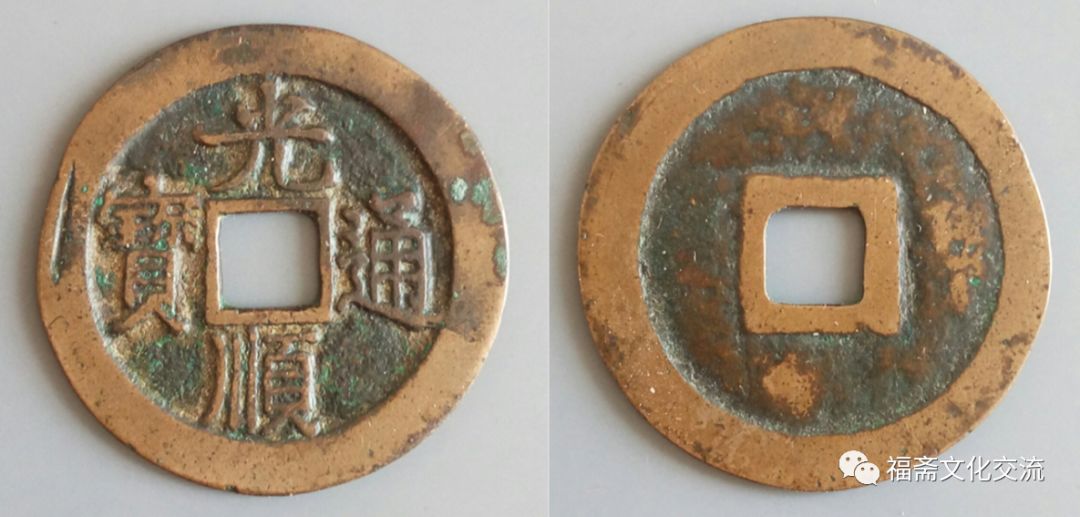 光顺通宝后黎朝圣宗黎灏光顺年间(1460年)铸,时在明天顺与成化间。此钱有大小二式,缘阔字小,小钱背平而量少。面文“光顺通宝”楷书,字体端正,笔画纤秀,制作精好。径2.2~2.4厘米,重2.5~3.1克,均光背无文。光顺钱存世甚丰,今不难得。