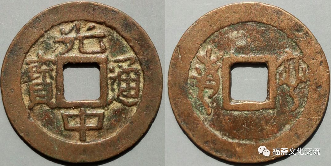 光中通宝西山起义军首领阮文惠于1783年在顺化称北平王,建元光中,并铸光中通宝,时值乾隆后期。此钱以红褐杂铜或青黄铜铸,体薄如纸,大小杂陈,文字瘦弱,品相甚差。“光中通宝”四字楷书,直读,所见多光背无文,有少数面背现重轮者。另有一种大样钱,背穿侧横列篆书“安南”二字,颇不和谐。一般径2~2.4厘米,重0.8~2.6克.此钱流传颇多,因其质劣每令藏家扼腕。