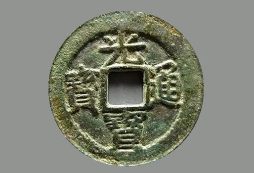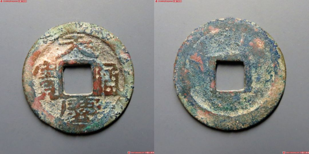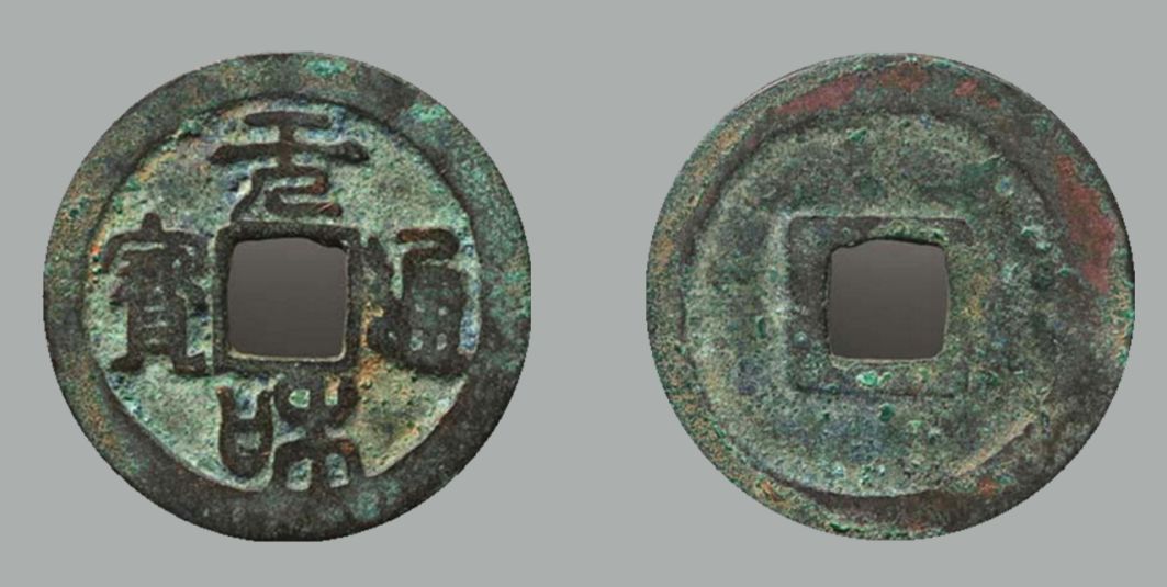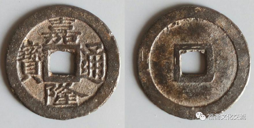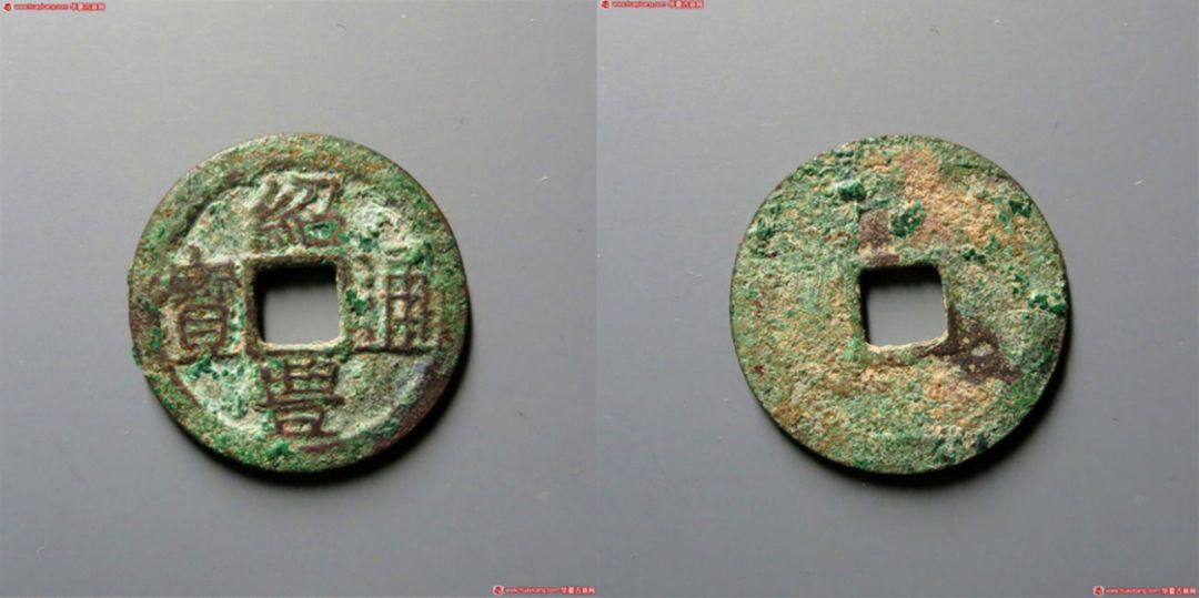 绍隆通宝陈朝圣宗绍隆年间(1258—1272年)铸,时当南宋宝祐至咸淳间。此钱铜色灰黑,肉薄缘阔,制作粗陋。“绍隆通宝”四字楷书,旋读,字迹多漶漫不清。径约2.2厘米,光背无文,穿郭面背可隐见四决纹。绍隆钱虽品相粗劣,然因其存世绝少,身价颇高。