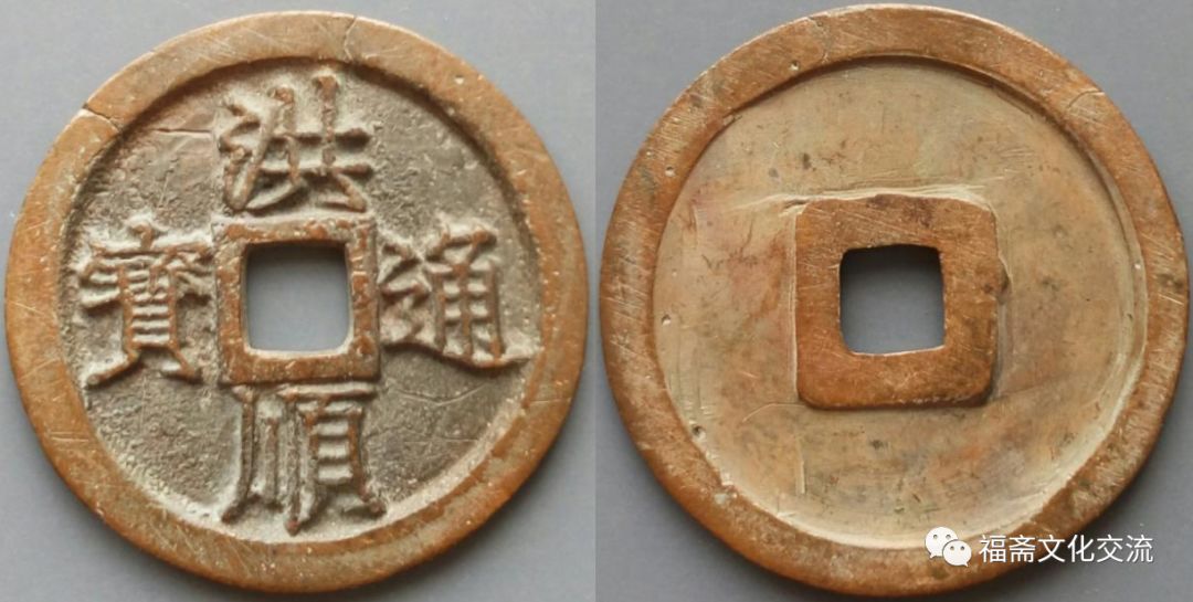 洪顺通宝后黎朝襄翊帝黎滢洪顺年间(1509—1515年)铸,时当明正德年间。此钱有大小二等,铸量均丰。“洪顺通宝”四字楷书,直读,文笔清秀,边廓纤瘦,品相佳好。径2.3~2.5厘米,重3~4.4克;光背无文。洪顺钱传世甚多,今不难得。