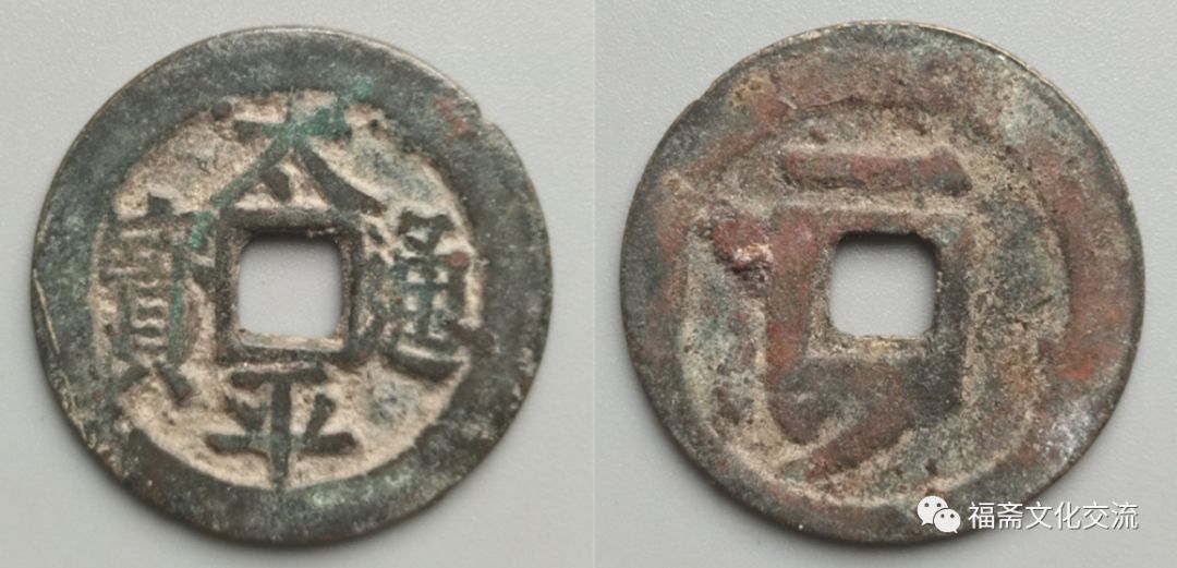 太平通宝后黎朝重新统一安南后,将军郑松专权,旧臣阮潢不满,在顺化另立“广南国”,自号太祖,并铸“太平通宝”钱,时在1610年前后,值明万历后期。此钱铜色红褐,制作粗疏,钱背因错范常现歪斜或重轮。面文“太平通宝”楷书,直读,“平”中两点外撇成“八”字状。背纹有上星下月者,藏泉者或有疑作上海小刀会刘丽川钱,大谬。另有背穿上“一”下“√”者,或系记值符号,未详。传世另见一种“两点平”仿宋太平钱,然背穿上下仍有“一√”符号,须留意与宋钱区分。一般径约2.4厘米,重2.2~3.2克。此类钱国内屡见不鲜。