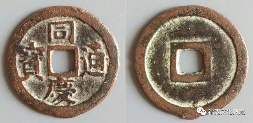 同庆通宝阮朝景宗阮福升同庆元年(1885年)铸,时当清光绪十一年。此钱有小平、折二两种。面文“同庆通宝”楷书,直读,文笔端恭,炯然有宋字遗风。边廓匀整,光背无文。径分别为2.4、2.7厘米,以折二钱制作更佳。然此二泉今均已不可多见。另有同庆通宝银钱数种,因其所出未明,今略。