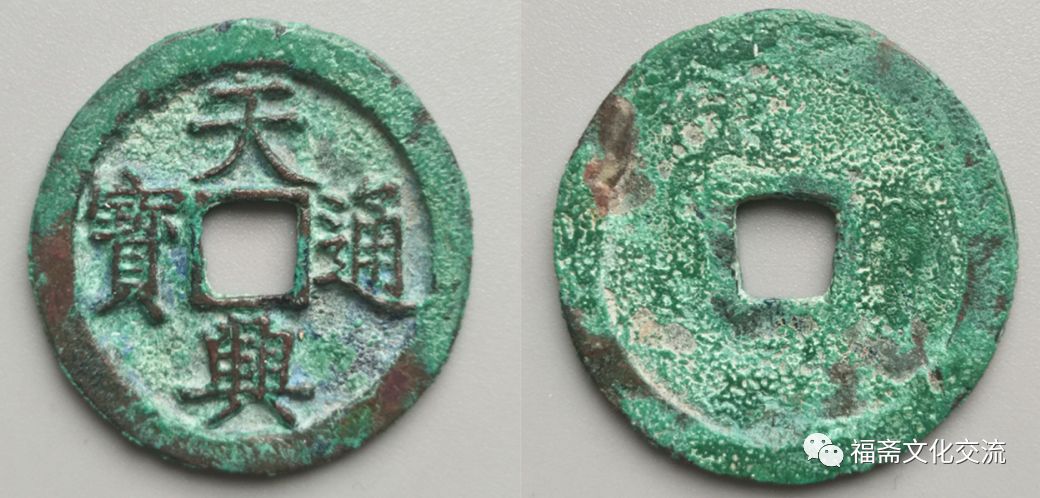 天兴通宝后黎朝废帝黎琮以庶兄弑弟而自立,改元天兴(1459年)并铸天兴通宝。面文“天兴通宝”楷书,直读,文笔流畅舒展,饶有明钱风韵。钱有大小二等,径2.1~2.4厘米,光背无文。钱体稍薄,边廓尚整。黎琮虽篡位九月被杀,然天兴钱传世不寡。
