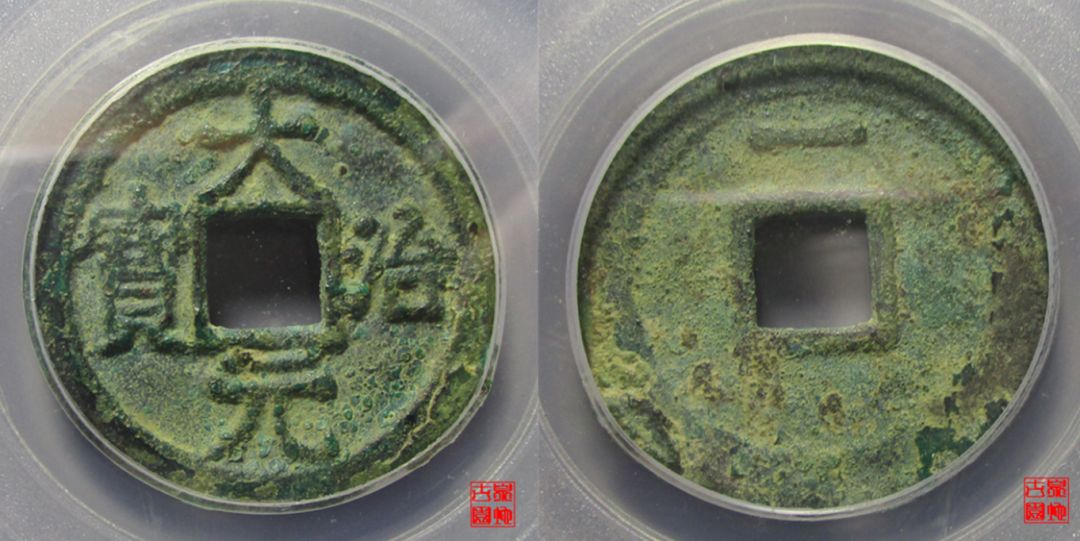 大治元宝安南陈裕宗大治年间(1358—1368年)铸。形同通宝钱。面文有真、行、隶、篆四体,旋读者多,亦有真、行书直读钱。径2.3厘米左右。大治钱版式纷繁,铸制尚丰,因为历年战乱加之外族入侵掠夺,致今存世品极少。