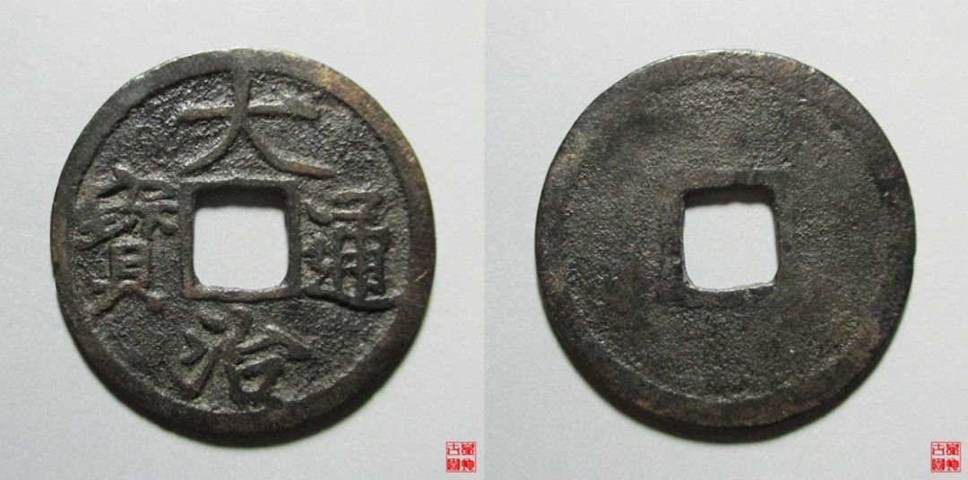 大治通宝安南陈裕宗大治年间(1358—1368年)铸,时值元至正末期。面文“大治通宝”有真、行、隶、篆四种书体,版式较繁,多为直读。制作稍工,边郭尚整。径约2.4厘米,光背无文。传世大冶通宝并不易见。