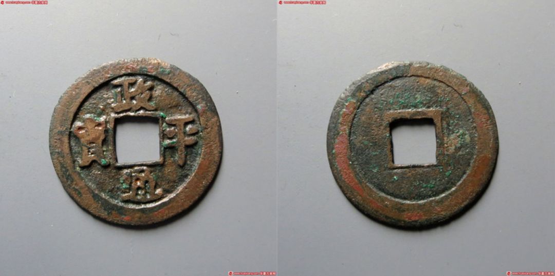 政平通宝陈朝太宗陈煚天应政平年间(1232—1250年)铸,时为南宋绍定至淳祐间。形制与建中通宝酷似,均为阔缘小字钱。“政平通宝”四字楷书旋读,文笔与建中钱如出一手。径约2.5厘米,光背无文,少数穿左右可见星月纹。此钱铜色淡褐,制作尚工,边郭修整。然世间所传甚罕。