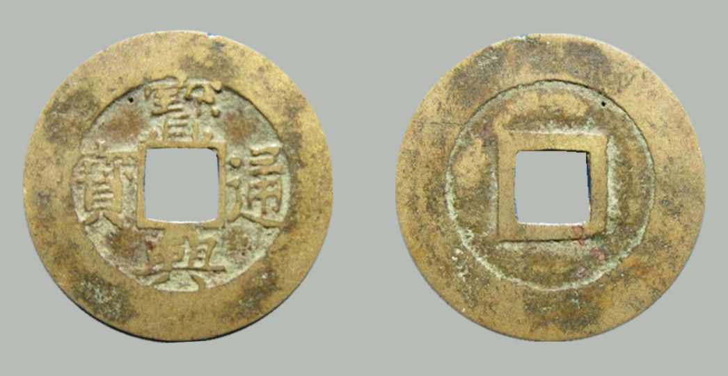 大和通宝后黎朝仁宗黎濬大和年间(1443-1453年)铸,时值明正统与景泰间。此钱形体较薄,有大小数种。“大和通宝”四字楷书,直读,文笔含瘦金体意,潇洒自如。径2.1~2.5厘米,重1~0.2克;均光背无文,边廓修整。大和钱存世较丰,不甚难求。旧谱有将“大和”释“太和”者,备考。