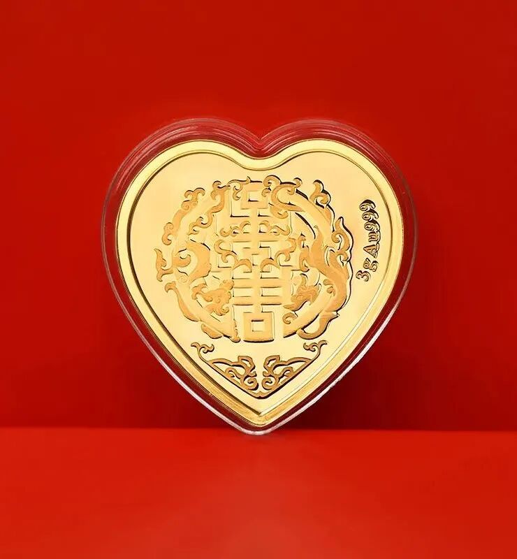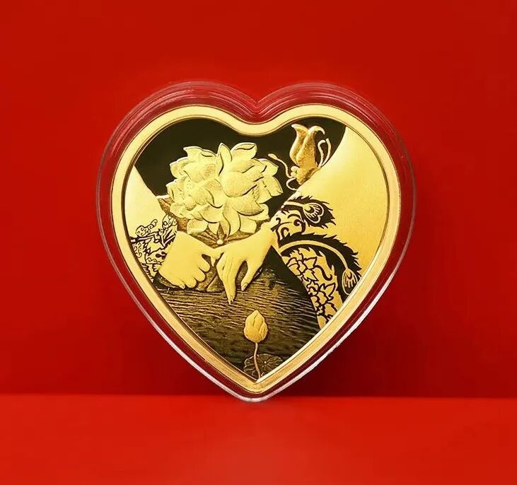 一枚心形纪念章既传达出了吉祥幸福的愿望,也展现了中国传统吉祥文化的博大精深。一是设计内涵,二是工艺材质。这套纪念章不仅设计好看,其工艺细节更是相当精美。纪念章以高浮雕喷砂和高亮镜面工艺相结合,使得整个章面明暗交错,表现力极强。蝴蝶采用了激光幻彩工艺,轻轻转动,可以看到五彩斑斓的效果,瞬间点亮了整个章面。湖面采用高浮雕喷砂,呈现出的水纹和波光,效果非常棒!抛开以上种种优点不说,这套章性价比也超高!相比同系列的纪念币价格仅有其一半。银章最大发行量2万枚,只要398元一枚;再看看金银套装,金章最大发行量5000枚,心形金银章只要2380元一套!“百年好合”心形纪念金银章配有专属定制包装,盒上还印制两个指纹拼成的爱心,别具一格。既是见证约定的信物,也是恋爱纪念日、结婚纪念日的专属礼物!