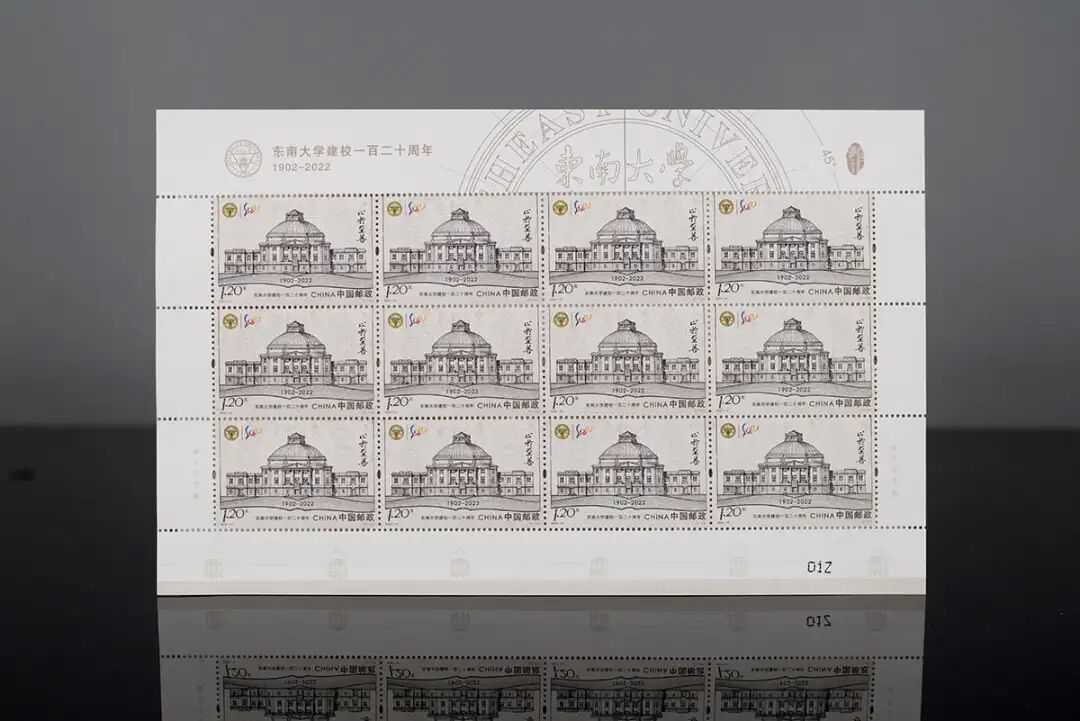 今年是东南大学建校120周年,中国邮政定于6月6日东南大学校庆日发行《东南大学建校120周年》纪念邮票一套1枚。