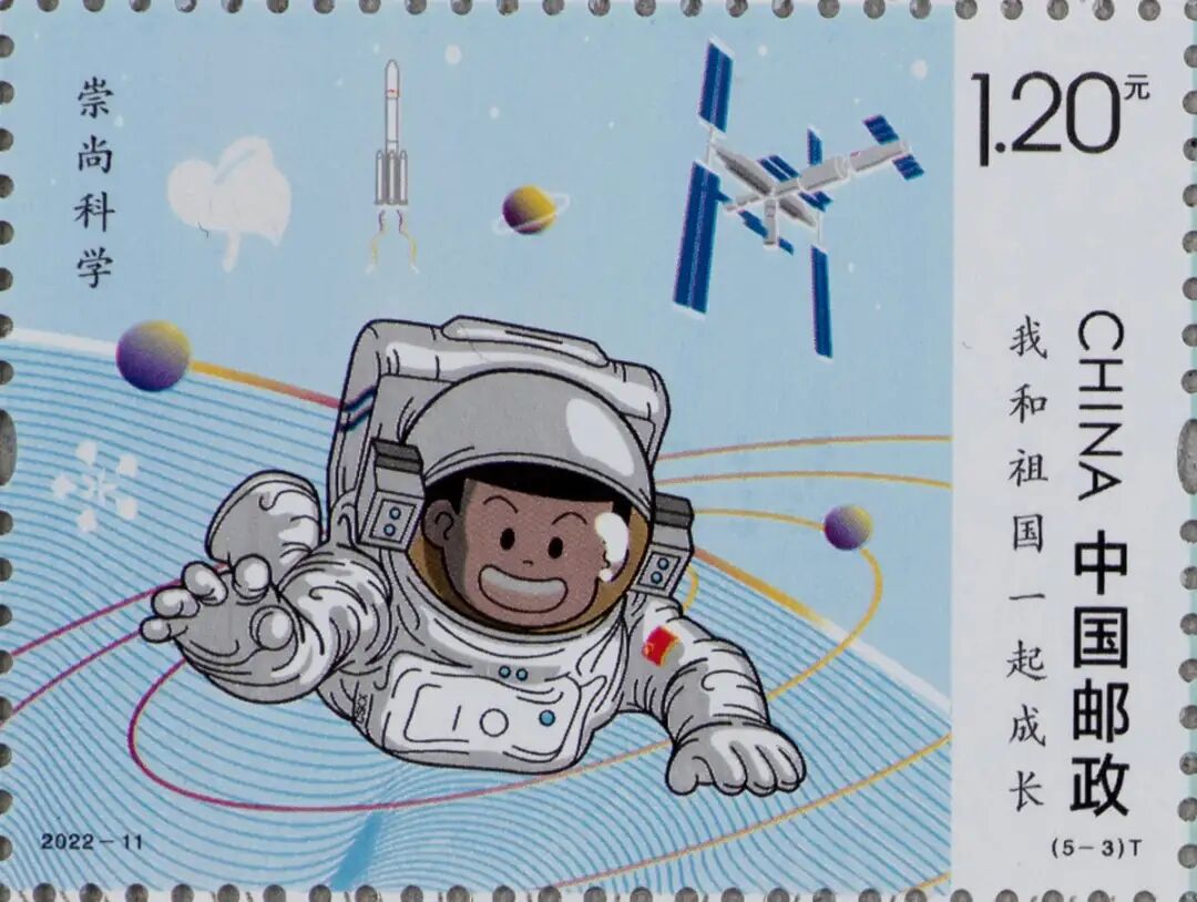 邮票图案名称分别为:热爱祖国、刻苦学习、崇尚科学、强健体魄、尊重劳动。五个主题,五种风格,仿佛连快乐都放大5倍!