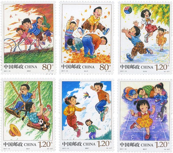 其实我国发行过不少儿童节邮票,小钱最喜欢的是《儿童游戏》邮票第一组,上面滚铁环、跳山羊、扔沙包、荡秋千、踢毽子、跳房子都是小时候我爱玩的游戏。