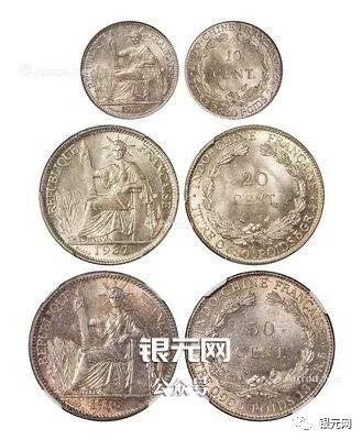 坐洋就是其中之一,是自1885年始有巴黎铸造的计主辅币四枚一套的银币,虽然法国殖民主义者很早就有铸造贸易银圆的想法,但是由于种种原因一直到1885年才正式发行了第一套坐洋银币,其主图为端坐的自由女神像,尽管与后来英帝国主义发行的站洋图案大相径庭,那是一个站立在船头的持戟武士,似乎在炫耀他们武力的强大,但是自由女神像似乎也并非善神,同样是以大量掠夺了中国和东南亚地区诸国的财富为目的。