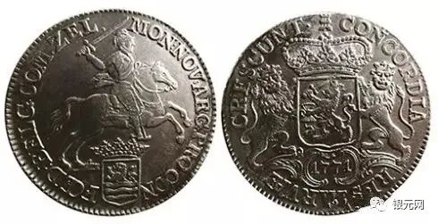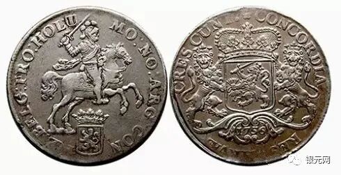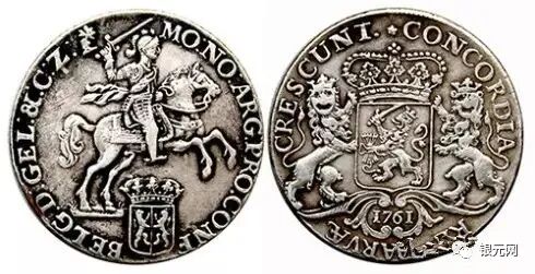 荷兰杜卡多银币,因其币面刻有武士持剑骑马图,下图为荷兰省1756年马剑