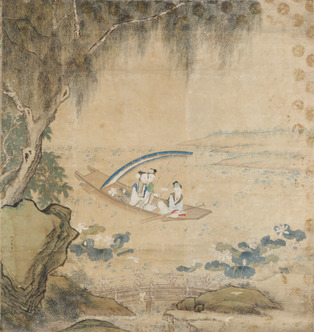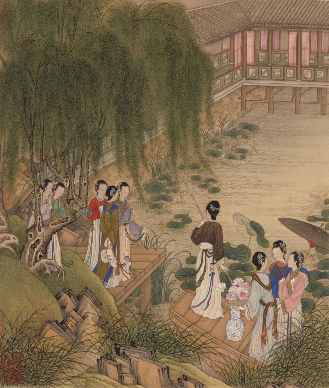 ▲清 陈枚 《月曼清游图》之六月采莲图景故宫博物院