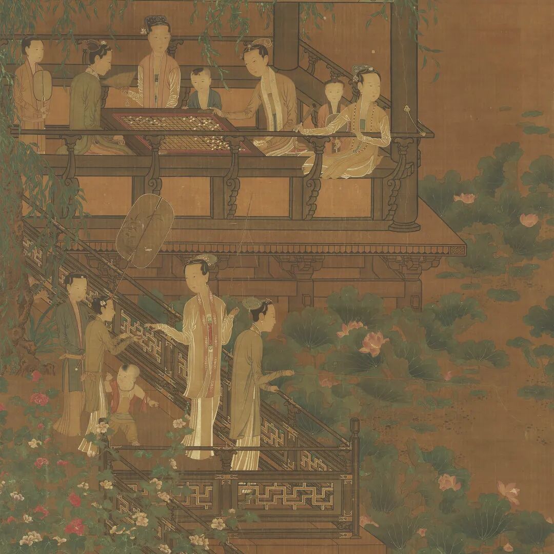 其实这样的赏莲情景不仅仅在清代,在前代画作中也十分常见。可见夏日赏荷是很有渊源的。